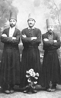 Yenikapı Mevlevihanesinden üç Mevlevi dervişine ait eski bir fotoğraf.