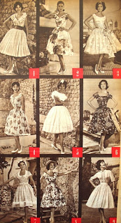 Fransa'nın meşhur moda yaratıcısı Brigitte de Cannes 1960'ın ilkbahar ve yaz mevsimi için hazırladığı elbise modellerinde bilhassa plili kabarık etek ve gorni olarak da brode üzerinde durmaktadır. Paris muhabirimiz Gülgün Üstündağ bildiriyor : 1- Kolsuz, dekolte büzgülü yaka, kruvaze beden, hafif plili etekli sade bir gündelik kıyafet. 2- Desenli taftadan göğüs üzeri hafif drapeli, bedeni sıkı, eteği plikaşeli dekolte bir model. 3- Naylondan üzeri brodeli açık yaka, düz beden, kabarık bol etekli bir çay elbisesi. 4- Yakası, eteği, bedenin ön kısmı küçük toplarla çevrili emprimeden sempatik bir elbise. 5- Etek ve omuzları çeviren bir karış enindeki brodesi ile şık bir yazlık kıyafet. 6- Dekolte kare yakalı, göğüs altları hafif drapeli, eteği plikaşeli emprimeden bir elbise. 7- Açık kare yakalı, kısa kollu, düz bedenli, belden büzgülü bol etekli bir elbise. Yaka ve eteği brode ile süslenmiştir. 8- Yaka, kemer ve eteği kendi deseninin renginde kurdele ile çevrili emprime bir elbise. 9- Bebe yaka, truvakar kol ve bedeninin ön kısmı yukarıdan aşağıya kadar farbalalı bir model....1960 |