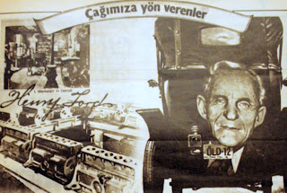 Çağımıza yön verenler : Henry Ford Bazılarına göre uygarlık tekerleğin bulunuşuyla, kimilerine göre de arabanın icadıyla başlamıştır. Henry Ford iki silindirli, dört beygir gücündeki ilk arabasıyla yepyeni bir çığır açmıştı. Kısa sürede insanlığın bir tutkusu olan bu icat modern yaşamdaki yerini durmaksızın sağlamlaştırmıştır. |