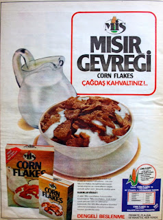 MISIR GEVREĞİ CORN FLAKES ÇAĞDAŞ KAHVALTINIZ ! Mis corn flakes toz şeker, soğuk süt... Pratik ve çağdaş kahvaltınız...Çıtır çıtır Mis corn flakes dengeli beslenmenin, temel vitaminlerini ve minerallerini sağlar. Yüksek kalori verir, severek ve iştahla yenir. HANIMLAR DİKKAT ! 2 Ader Mis corn flakes kutusundan keseceğiniz "Mis corn flakes çok kolay" yazılı parçayı isim ve adresinizi belirterek P.K. 129 Mecidiyeköy İstanbul adresine postalayın. Külotlu çorabınız hemen gönderilecektir. DENGELİ BESLENME Piknikte, plajda, seyahatte, her yerde...1981 |