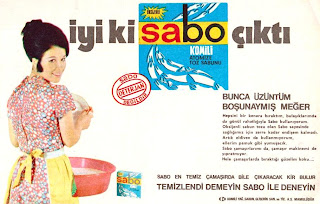 İyi ki Sabo çıktı Oksijenli Komili atomize toz sabunu Sabo deterjan değildir... Bunca üzüntüm boşunaymış meğer Hepsini bir kenara bıraktım, bulaşıklarımda da gönül rahatlığıyla Sabo kullanıyorum. Oksijenli sabun tozu olan Sabo sayesinde sağlığımız için zerre kadar endişem kalmadı. Artık eldiven de kullanmıyorum, ellerim pamuk gibi yumuşacık. Sabo çamaşırlarımı da, çamaşır makinemi de yıpratmıyor. Hele çamaşırlarda bıraktığı güzelim koku... Sabo en temiz çamaşırda bile çıkaracak kir bulur Temizlendi demeyin Sabo ile deneyin... Komili yağ sabun gliserin san ve tic. a. ş. mamulüdür. (1970) |