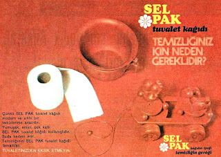 Selpak tuvalet kağıdı temizliğiniz için neden gereklidir ? Çünkü sel pak tuvalet kağıdı modern ve sıhhi bir temizlenme aracıdır. Yumuşak, emici, çok katlı sel pak tuvalet kağıdı kullanışlıdır. Suda hemen erir. Temizliğinizi sel pak tuvalet kağıdı tamamlar. Tuvaletinizden eksik etmeyin. Selpak kağıdın ipeği temizliğin gereği...1973 |