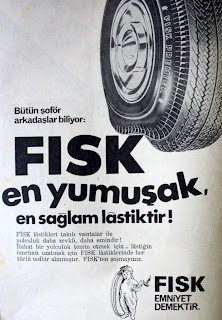 Bütün şoför arkadaşlar biliyor : FISK en yumuşak, en sağlam lastiktir ! Fisk lastikleri takılı vasıtalar ile yolculuk daha zevkli, daha emindir ! Rahat bir yolculuk temin etmek için... Lastiğin ömrünü uzatmak için Fisk lastiklerinde her türlü tedbir alınmıştır. Fisk'ten şaşmayınız. FISK emniyet demektir. (1968) |