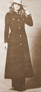 küçük bedenli, dar omuzlu, kolları manşetli ve düz hatlı bir midi manto.