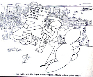 - Her halde müzikle doyar Hüsnü'cüğüm, "Müzik ruhun gıdası imiş"