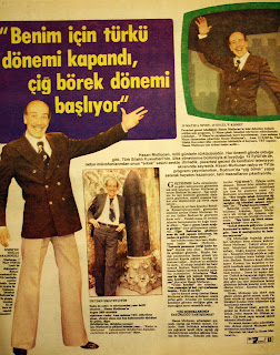 BENİM İÇİN TÜRKÜ DÖNEMİ KAPANDI, ÇİĞ BÖREK DÖNEMİ BAŞLIYOR... (19 MAYIS'A NİYET, 15 EYLÜL'E KISMET : Pazartesi gecesi izlediğimiz Hasan Mutlucan'ın kale dekorları önünde çekilen solo programı 13 Mayıs günü İstanbul televizyon stüdyolarında çekilmişti... 19 Mayıs'ta yayınlanmak üzere hazırlanmıştı. Ama nedense 19 Mayıs ekranından çıkarttılar Hasan Mutlucan'ı... Ama, 12 Eylül'de Türk silahlı kuvvetleri ülke yönetimine bütünüyle el koyunca TRT kapıları Hasan Mutlucan için ardına dek açıldı...) (İZMİR'DE DOĞAN KARADENİZLİ : Mutlucan 1 Mart 1926'da İzmir'de doğmuştur. Babası Karadenizlidir. 6 kardeşin sondan ikincisidir. Sanat hayatı tiyatro ile başlamış. İstanbul radyosuna da girmiş, bundan 3 yıl öncede emekli olmuştur.) (TRT'DEN ŞİKAYETÇİYİM : Haklıda radyo ve televizyondan yana dertli olmakta... Hasan Mutlucan'ın bugün 2.000 türkülük repertuvarı vardır. Ama nedense TRT mikrofona olsun, ekrana olsun onu hep kahramanlık türküleri ile getirir diğer türkülerini ise türküden saymaz ! İşte Mutlucan'ın şikayeti bundan yana... Radyo ve televizyona kahramanlık türkülerinin dışındaki eserlerimle de gelmek istiyorum diyor...) Hasan Mutlucan milli günlerin türkücüsüdür. Her önemli günde olduğu gibi Türk silahlı kuvvetlerinin ülke yönetimine bütünüyle el koyduğu 12 Eylül'de de radyo mikrofonlarından onun "erkek" sesini dinledik, pazartesi gecesi de kendisini televizyon ekranında seyrettik. Hasan Mutludan radyo ve TV'de programı yayınlanırken, Bodrum'da "çiğ börek" yapıp satarak hayatını kazanıyor ve tatil masraflarını çıkartıyordu... Geçtiğimiz hafta ekranlarımıza gelen kahramanlık günlerinin tok sesli sanatçısı Hasan Mutlucan şu sıralar Bodrum'da yaşıyor... Ege sahilinin bu inci kentinde günlerini dinlenerek geçirirken emekli maaşına katkısı olur düşüncesiyle çiğ börek yapıp satıyor... Bundan 3 yıl önce İstanbul belediye konservatuvarındaki görevinden emekliye ayrılan Hasan Mutlucan bu yıl yaz tatilini Bodrum'da geçirmeye karar verir... Emekli maaşı ile oradaki tahmini harcamalarını bir kağıt üzerine döker... "İşte o zaman kazın ayağını gördüm." diyor gülümsemeye çalışarak. "Eğer Bodrum'da gönlümce uzun bir tatil yapmak istiyorsam bir yerden ek gelirim olması şarttı." İşte bundan sonra kara kara düşünmeye başlar Hasan Mutlucan... "Sonunda paramızın yettiği kadar kalırız..." diyerek yola çıkar. Bodrum'a ilk geldikleri günlerdir... Bir gün kaldığı pansiyondan denize girmek için çıkarken kapıda eskiden tanıdığı bir dostuna rastlar. Bodrum'un yerlisidir bu dostu. El sıkışıp karşılıklı hal hatır sorarak Bodrum kalesinin dibinde limana hakim kahvede karşılıklı çaylarını yudumlarlar. Arkadaşına : "Bodrum'da daha çok kalmak istiyorum, ama kendime bir iş imkanı bulmalıyım." diye açılır Hasan Mutlucan... "Üzme kendini..." der arkadaşı... "Sen yapacağın işi bul, yeri ayarlaması benden... Yeter ki sen iste..." İşte bu kısacık cevap üzerine Hasan Mutlucan'ın dünyası aydınlanır, neşesi yerine gelir. Arkadaşı yer konusunda kendisine güvence verdiğine göre ne yapacağına karar vermelidir artık... "ÇİĞ BÖREKLERİMİN ÜSTÜNLÜĞÜ TARTIŞILMAZ" Hasan Mutlucan arkadaşları arasında yaptığı çiğ börekle tanınır. Yıllardır fırsat buldukça arkadaşlarını eve çağırarak kendi eliyle yaptığı çiğ börekleri ikram ederken eğlenme fırsatını da bulurlar... Kısacası, pek meşhurdur "Çiğ börek"i... Öyleyse neden olmasın... Hemen fırlar yerinden çarşıda istediği malzemeleri bulabilmek için kısa bir araştırma yapar. Ve Bodrumlu arkadaşının karşısına dikilir... "Ben her gün sabah dokuzdan öğleden sonra ikiye kadar kendi elimle yaptığım çiğ börekleri satmak istiyorum." der... "Yerimi hazırla hemen !". Beklediği cevabı almak için çok beklemez. Arkadaşı, Hasan Mutlucan'a söz verdiği gibi dolaşmış sağa sola başvurmuş ona istediği yeri ayarlamıştır... "İşte bizim çiğ börek satmamızın öyküsü" diyor sanatçı... "Sabah dokuzda geliyorum Çardak restaurantın önüne. Kuruyorum tezgahı... İnan ki umduğumdan da fazlasını satıyorum." Çiğ börekçiliğe başladığı günden beri sabahları biraz erkence kalkıyor Hasan Mutlucan... Çekiyor altına şortunu. Sıkıştırıyor koltuğunun altına torbayı... Doğru kasabın yolunu tutuyor. Kasaptan istediği şekilde az yağlı kıymayı aldıktan sonra kaldığı pansiyona dönüyor. Hamuru kendi elleriyle açıyor. Kıymayı tuz, karabiber ve formülü kendinde saklı malzemelerle karıştırarak... Börekli yarım daire şeklinde kesiyor... Sonra bir tepsiye diziyor. Üstünü de kapayarak doğru tezgahın başına koşuyor. Müşterilerin isteğine göre kaç tane istiyorlarsa hemen gözlerinin önünde kızartıp sıcak sıcak ellerine veriyor. Kazancıda yolunda, neşesi de... Hasan Mutlucan için türkü dolu günler çoktan geride kalmış. Artık yıllardır evinde eşi dostu için hazırladığı börekleri bundan böyle müşterileri için hazırlamak amacında... Tek düşüncesi ideali, gelecek için projesi ise Bodrum'da küçük bir yer almak. Adını taşıyan bir dükkan açmak. Çiğ börek yapıp satarak ekmek teknesini döndürmek... Ve zaman zaman radyo mikrofonlarına, ekranlara çıkarak Mutlucan adını sevenlerine hatırlatmak. Hayattaki tek ideali bu Hasan Mutlucan'ın...1980 |
