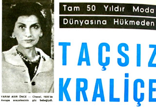 TAM 50 YILDIR MODA DÜNYASINA HÜKMEDEN, TAÇSIZ KRALİÇE COCO CHANEL (YARIM ASIR ÖNCE : Chanel, 1920'de Avrupa sosyetesinin göz bebeği idi.) Onu beyaz perdede canlandıracak olan Katharine Hepburn, Coco Chanel'i anlatıyor : İkimizinde dili bir şeyler söylemeye varmadı. Birkaç saniye sessiz sedasız birbirimizi alıcı gözüyle tepeden tırnağa süzdük. O an içimizden geçenleri sanırım yüzümüzden de okumak mümkündü. Evet birbirimizi sadece isim olarak tanıyorduk. Ama ilk karşılaşmamızdı ve tesadüfler bizi garip bir şekilde birbirimize bağlamıştı. Moda dünyasının ünlü Coco Chanel'i, sinema dünyasının Coco Chanel'i olmaya hazırlanan misafirini yani beni, Paris'te Cambon caddesindeki "saray yavrusu" evine çağırmış, film çalışmaları başlamadan önce bana kendini iyice tanıtmak ve bu arada beni de iyice tanımak istemişti. İlk karşılaşma anının heyecanını geçirdikten sonra aradaki buzlar birden çözülüverdi. Kırk yıllık dostlar gibi tatlı tatlı sohbetlere daldık. Ama genede fırsat buldukça birbirimizi göz ucuyla gizli gizli incelemekten geri kalmıyorduk. Coco Chanel, asıl adıyla Gabrielle Chanel, 58 yıl önce şimdiki Chanel sarayının bulunduğu Cambon caddesinde küçük bir şapkacı dükkanı açarak moda dünyasına adımını atmış ve yıllar yılı buradan dünya kadınlarına hükmetmişti. Moda dünyasında bir devir yaratan bu ünlü kadının hayat hikayesi yarattığı modeller kadar ilgi çekiciydi. "Ben Fransa'nın güneyinde küçük bir kasabada doğdum." diye söze başladı. "Babam erkek çocuk istediği halde kız çocuğu olunca bana "Coco" adını koyup böylece avunmak istemiş. O gün bu gün Coco'luğu üzerimden atamadım. 6 yaşında annemle babamı kaybettim, beni teyzemler yetiştirdi. 16 yaşında Paris'e geldim. Kalbim tatlı aşk heyecanları ile dopdolu, gözlerim umut ışıklarıyla pırıl pırıldı. Gülmek, eğlenmek, gezmek, sevmek, sevilmek istiyordum. Herkes bana gıpta etmeli, yakışıklı erkeklerin hepsi benim peşimden koşmalı idiler. Bu isteğim çabuk yerine geldi. Ünlü şahıslarla tanıştım. Parlak göz kamaştırıcı bir hayat sürmeye başlamıştım." GAYESİZ BİR HAYATIN SONU Coco Chanel bunları anlatırken gözleri uzaklara dalmıştı. O günleri hasretle mi, yoksa pişmanlık duygularıyla mı anmakta olduğunu kestirmek güçtü. Yalnız böyle gayesiz bir hayat sürmek pek hoşuna gitmemiş olacak ki, 1912 yılında küçük bir şapkacı dükkanı açıp iş hayatına atılmıştı. "O günlerde kadınların hemen hepsi şapka giymeye meraklıydılar ve benim şapkalarım pek beğeniliyordu. Küçücük dükkanımda Paris kadınlarına şapka yetiştirmek için geceli gündüzlü çalışmaya başlamıştım. Ama halimden şikayetçi değildim. Çalışmak bana yalnızlığımı unutturuyordu. Hep benden şapka alan müşterilerim bir süre sonra "Şu güzel şapkalara uyacak kıyafetler de hazırlasaydınız. " diye sızlanmaya başlamışlardı. Müşterilerimin isteğine bir süre karşı koydum, fakat sonunda çaresiz kalıp şapkacılıktan moda desinatörlüğüne geçtim." HAYATIMDA YENİ BİR DEVİR Chanel 1920'li yıllarda desinatörlük işine başlamadan önce de giyinişi ile kadınların moda ilahesi haline gelmişti. Paris kadınlarının hepsinin Chanel gibi giyinmeye çalıştıklarını gayet iyi hatırlıyordum. Küçük siyah elbiseler, kısa etekler, elbiselerin üzerinde hakim değişik aksesuarlar...1970 |