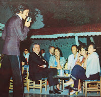 BABA SATIR'DAN SEVGİLERLE İlk gecede Kemal Satır bulunamamıştı. Onun yerine anne Memduha Satır oğlunu öpüp kutladı (üstte). Hafta sonunda parti işlerinden baş alıp İstanbul'a koşan baba Satır, Tülin ve Kerim Bayezit, Bilge Ozan ve eşi Mehduha Satır ile birlikte oğlunu bol bol alkışladı...1970 |