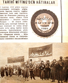 Halide Edip hatıratı ile tarihi Sultanahmet mitingden hatıralar 6 haziran 1919 günü yapılan muhteşem mitingde göğüslerde taşınan rozetin (sağda) üzerinde hem eski harflerle hem de Fransızca yazılmış şu cümleler vardı : "İzmir Türk kalacaktır - Smyrne restera Turque - 23 mayıs 1335" altta aynı mitinge katılan içleri hürriyet ve vatan sevgisiyle dolu genç talebe kızlarımızla, kadınlarımızı görüyorsunuz. Ellerindeki dövizlerde "yaşamak isteriz - Müslümanlar ölmez ve öldürülemez" cümleleri okunmaktadır.