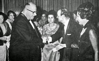 Cumhurbaşkanı Baloda : Geçenlerde Ankara otelinde tertiplenen Çocuk bakım derneğinin balosu Erol Büyükburç'un şarkılarıyla daha da renklendi. Üstte cumhurbaşkanı Cevdet Sunay, eşi Atıfet Sunay ve Firuzende Çağlayangil, gelişlerinde Refia Çeliker, Nevzat Çeliker ve Nevin İlkünsal tarafından karşılanıyorlar...1970 |