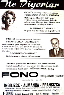 Ne Diyorlar Fono correspondence institute İngilizce derslerinin mektupla öğretim için çok mükemmel olduğunu takdir ediyorum. Bunu tecrübelerime dayanarak söyleyebilirim. Margaret Guest - İngiliz kültür heyeti öğretmeni Fono correspondence institute Fransızca dersleri hakikaten çok faydalı bir şekilde hazırlanmıştır. Bu orijinal derslerle Fransızca öğretimi daha kolaylaşmış oluyor. Georges Charmoy - Galatasaray lisesi öğretmeni Sadece yukarıda resimleri ve enstitümüz hakkında fikirleri bulunan iki öğretmen değil, istisnasız herkesin mükemmel dediği FONO Correspondence institute metodu ile siz de İNGİLİZCE - ALMANCA - FRANSIZCA dillerinden birini öğrenip kendinize daha iyi bir istikbal hazırlayabilirsiniz. Ücretsiz izahlı broşürümüzü isteyiniz. FONO İstiklal caddesi 213 kat 4 Beyoğlu - İstanbul (1962) |