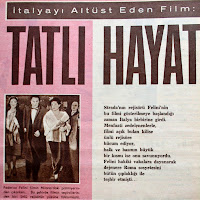 İTALYAYI ALTÜST EDEN FİLM : "TATLI HAYAT (DOLCE VITA)" Strada'nın rejisörü Fellini'nin bu filmi gösterilmeye başlandığı zaman İtalya birbirine girdi. Menfaati etkilenenlerle, filmi açık bulan kilise ünlü rejisöre hücum ediyor, halk ve basının büyük bir kısmı ise onu savunuyordu. Fellini hakiki olaylara dayanarak dejenere Roma sosyetesini bütün çıplaklığı ile teşhir etmişti... Federico Fellini filmin Milano'da yapılan prömiyerinden çıkarken... Bu şehirde filmin seyircilerinden birisi ünlü rejisörün yüzüne tükürmüştür...1960 |