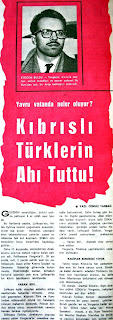 KIBRISLI TÜRKLERİN AHI TUTTU ! Yavru vatanda neler oluyor ? (ETTİĞİNİ BULDU : Yorgacis kıvırcık saçları, sarkık dudakları ve esmer çehresi ile Rum'dan çok bir Arap tedhişçi görünümündeydi...) Gecenin sessizliğini birbiri ardına patlayan 6 el silah sesi bozdu. Bu ilerlemiş saatte, Lefkoşa'nın Milea Kyhrea kesimi çoğunlukla sessizdir. İn cin top oynar. Nitekim, otomatik atan tabancalarının yankılar yapan tarakasına tek kul koşmadı. Silahlı mütecavizler koyu karanlıkta kaybolup gittiler. Daha ilk kurşunda otomobilinin direksiyonu üzerine cansız yığılıp kalan şahsın adı Polikarpos Yorgacis idi. 39 yaşında, evli, 2 çocuk sahibi eski bir politikacıydı. Uzun yıllar Kıbrıs iç işleri ve savunma bakanlığı görevinde bulunmuştu. Öldürüldüğü zaman birtakım karanlık işlerinin yanı sıra Lefkoşa'da bir kibrit fabrikasını işletiyordu. VARAN BİR !... Lefkoşa halkı olaydan sabahın erken saatlerinde haberdar olmuştu. Ama çok geçmeden Kıbrıslı Türk ve Rumlardan müteşekkil büyük bir kalabalık cinayet mahallini doldurdu. Polisin kordon altına aldığı otomobildeki cesetle hemen herkes ilgileniyordu. Bilhassa Türkler, direksiyon başında cansız yatan Yorgacis'in cesedine merakla bakıyorlardı. Daha birkaç gün önce bir İngiliz gazetecisine "Ben ölümden korkar mıyım ?" diyen ünlü EOKA'cının yüzünde hala göğsüne çevrilen tabancaları gördüğü andaki korku ifadesi vardı. Lefkoşalı Türkler, Yorgacis'in cesedi cankurtaran arabasına yüklenirken : - Varan bir !... diyerek olay yerini terk ettiler. Yorgacis, Türklere yaptıklarının cezasını bulmuştu. RAKİPLER BİRBİRİNİ YİYOR... Yavru vatan Kıbrıs'ta her zamankinden ayrı bir hava esiyor artık. Şimdiye kadar devamlı adadaki Türklerin imhası için hazırlanan planlar bu defa Rum liderlerinin birbirlerini yok etmesi için düzenleniyor. İlk olarak "Derhal enosis" diye direten müfrit Eoka'cı Yorgacis, rakipleri tarafından saf dışı edildi. Kıbrıslı Türkler birinci düşmanlarının üzerine bir çarpı işareti çektiler. Şimdi geride en az Yorgacis kadar azılı bir Eoka lideri var : Nikos Sampson ! Ancak o da Rum temsilciler meclisi başkanı Klerides ile birlikte canının korunması için polise müracaat etti. |