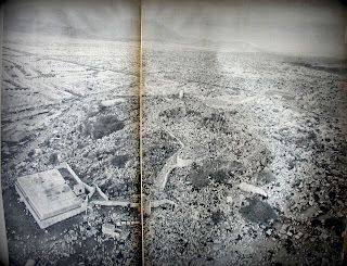 1972 senesi Mekke'nin havadan çekilmiş bir fotoğrafı. İslamın doğduğu yer : Nur dağı ve Arafat İşte hac tarihinin belki en önemli resmi.Bütün dünya basınında ilk defa olarak helikopterden çekilmiş bir hayat fotoğrafı... Her yıl Arafat dağının üstünde kurulan çadır şehir ve mahşeri kalabalık. Daha ilerde yer alan planda Kuran'ı Kerim'in Hz. Muhammed'e nazil olduğu nur dağının sureti görülmektedir. Peygamber burada yıldızlara bakarak uzun uzun düşünürdü... Arkadaşımız Mehmet Biber, Suudi Arabistan hava kuvvetlerinin bir helikopteriyle üstteki resmi çekti... |