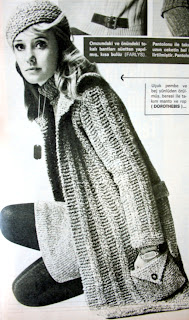 Uçuk pembe ve bej yünlüden örülmüş beresi ile takım manto ve rop