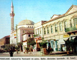 , Edremit'te yeni cami ve çarşı. Şehir denizden içerdedir. (E. Tutel)