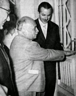 İmar ve iskan bakanı Ord. Prof. Dr. Fahrettin Kerim Gökay 20.000 ciltlik şahsi kütüphanesini İstanbul belediyesine vermiş bulunmaktadır. Bu kütüphane halen belediye tarafından türbe'de düzenlenen bir binada kendi adına halka açılmıştır. Resimde Gökay kütüphanesinin açılış merasiminde görülüyor...1962 |