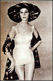 'den 1962 yılına ait şık bir mayo, plaj giysisi ve şapka üçlüsü.