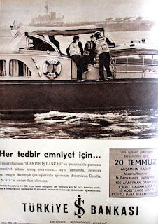 Her tedbir emniyet için... Tasarruflarınızı Türkiye İş bankasına yatırmakla paranızı emniyet altına olmuş olursunuz... Aynı zamanda senenin en zengin ikramiye çekilişlerinde şansınızı denersiniz. Üstelik % 6.5'a kadar faiz alırsınız. Vadesiz hesaplarda her 200 liraya, vadeli hesaplarda her 100 liraya ayrı bir kura numarası verilir. Kura numaralarınızı keşidelerden 15 gün evvel hesabınızın bulunduğu şubenizden öğrenebilirsiniz. Yılın üçüncü çekilişine katılabilmek için 20 Temmuz 1962 AKŞAMINA KADAR tasarruflarınızı iş bankasında toplayınız... 100 apartman dairesi, 1 adet 100.000 TL, 10 adet 5.000 TL + ÇEŞİTLİ PARA İKRAMİYELERİ... TÜRKİYE İŞ BANKASI Paranızın... İstikbalinizin emniyeti... |