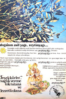 Doğanın asil yağı, zeytinyağı İnsanoğlu çeşitli çağlarda çeşitli besinleri denemiş fakat 6.000 yıldır mutfağından, kilerinden uzaklaştırmadığı tek bitkisel yağ zeytinyağı olmuştur. Günümüzün ekonomik koşulları bazı bazı zeytinyağı'na karşı kısa ömürlü rakipler de ortaya çıkarabiliyor. Fakat insan türünün doğaya göre biçimlenmiş olan varlığı her zaman için yine doğal olanı ne ise onu seçmektir... İnsanoğlu artık şunu iyi bilir ki... Doğal olan yağ yani zeytinyağı insan yapısının güzelliğini bozmuyor... Şişmanlatmıyor... Zeytinyağı binlerce yıldan bu yana mutfağımızda sağlığımızla en uyumlu, en lezzetli olduğu yiyecekleri kendi denemiş ve kendi seçmiştir. Doğal varlığımıza, beden varlığımıza en uygun olan yine doğal olan yağdır. Be bu da... zeytinyağıdır... Milletler arası Zeytinyağı Konseyi Teşekkürler sağlık verene, tok tutana ve lezzetli olana...1973 |