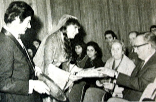 Eski Oyun : Şehzadebaşı'ndaki "Küçük" tiyatroda "Arşın mal alan" operetinin değişik bir galası oldu ve bütün oyuncular iki perde arasında davetlilere içki ikram ettiler. Resimde seyirciler arasındaki Refik Koraltan ve eşine Erden Ener ve Güner Ümit'in içki verişleri görülmektedir...1968 |