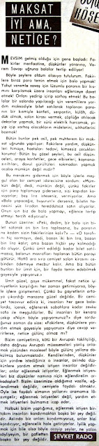 'nun 1962 yılında Hayat dergisi Sohbet köşesinde kaleme almış olduğu "Maksat iyi ama netice ?" başlıklı köşe yazısı.