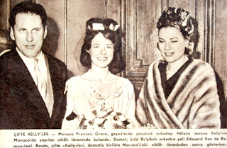 Çifte Kelly'ler : Monaco prensesi Grace Kelly geçenlerde çocukluk arkadaşı Helene Jeanne Kelly'nin Monaco'da yapılan nikah töreninde bulundu. Damat ünlü Belçikalı orkestra şefi Edouard Van De Remoorteel. Resim çifte Kelly'leri damatla birlikte Monaco'daki nikah töreninden sonra gösteriyor...1962 |