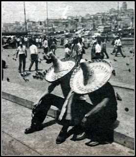 Meksika şapkaları güneşin etkisinden bir nebze korunmaya çalışan iki vatandaş.
