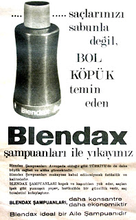 Saçlarınızı sabunla değil, bol köpük temin eden Blendax şampuanları ile yıkayınız. Blendax şampuanları Avrupa'da olduğu gibi Türkiye'de de daha büyük rağbet ve alaka görmektedir. Blendax şampuanları mukayese kabul edilemeyecek üstünlük ve kalitededir. Blendax şampuanları kepek ve kaşıntıları yok eder, saçları ipek gibi yumuşak yapar, harikulade bir güzellik verir, saç tuvaletini kolaylaştırır. Blendax şampuanları daha konsantre daha ekonomiktir. Blendax ideal bir aile şampuanıdır...1969 |