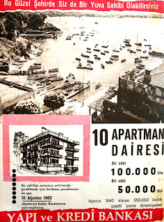 Bu güzel şehirde siz de bir yuva sahibi olabilirsiniz... 10 Apartman dairesi, bir adet 100.000 lira, bir adet 50.000 lira. Ayrıca 1660 kişiye 350.000 liralık çeşitli para ikramiyeleri. * Bu çekilişe şansınızı arttırarak girebilmek için birikmiş paralarınızı en geç 15 Ağustos 1962 akşamına kadar bankamıza yatırmalısınız. YAPI ve KREDİ BANKASI |