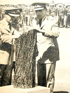 23. Piyade alayının şeref günü kutlaması 16 Temmuz 1964 Perşembe günü Rami kışlasında güzide bir davetli topluluğunun önünde parlak bir törenle kutlandı. Fotoğrafta alayın şeref kütüğüne tümen komutanı tarafından plaka çakılırken görülmekte. Rami kışlasında yapılan bu törende 23. piyade alay komutanı kurmay albay Fevzi Aysun'da bir konuşma yapmıştır. Tören alayın geçit resmi ile sona ermiştir... |