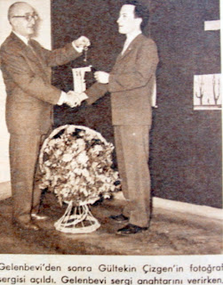 Gelenbevi'den sonra Gültekin Çizgen'in fotoğraf sergisi açıldı. Gelenbevi sergi anahtarını verirken.