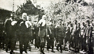 Taşköprü'de kendisini seyretmeye gelen halkı selamlarken görülmektedir.