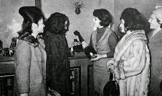 Atilla Galatalı, Seniye Fenmen, Cevdet Altuğ, Rabia Liman ve Özgül Noyan adlarında beş sanatçımızın olgunlaşma enstitüsünde açtıkları seramik eserleri sergisi ilgiyle takip edildi. Resimde sanatçı Özgül Noyan (ortada) ziyaretçilere eserleri hakkında bilgi verirken görülüyor...1964 |
