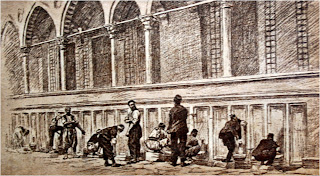 Teravih namazı için Süleymaniye camisinde abdest alanlar gravürü.