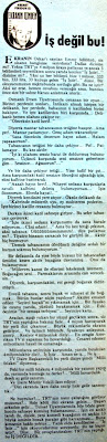 'in 1980 yılında Tv'de 7 gün adlı dergide yer alan Ekranın içi adlı köşesinde yayınlamış olduğu "İş değil bu" başlıklı yazısı.