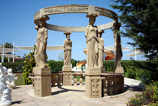 Karyatid heykellerinin bahçe dekorasyonunda modern kullanım örneği