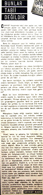 'nun 1964 yılında Hayat dergisi Sohbet köşesinde kaleme almış olduğu "Bunlar tabii değildir." başlıklı köşe yazısı.