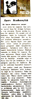 AİLE POSTASI Aşırı Kıskançlık Bir hanım okuyucumuz yazıyor : "Çok dertli bir insanım. Size sırrımı açarak bana bir derman vermenizi rica edeceğim. Kocam müthiş kıskanç bir adamdır. 10 senedir evli olduğumuz halde bu kıskançlık hala biraz olsun hafiflemedi. Her an benim kendisini aldattığımı zannediyor. Ben yalnız başıma hiçbir yere gidemem. Ailece kimse ile görüşmeyiz. Şayet görüşecek olsak kavgalarımız günlerce, haftalarca sürer. Bana olmadık hakaretlerde bulunur. Halbuki namuslu ve dürüst bir insanım. Kocamı seviyorum. İhanet etmek hayalimden bile geçmez. Gel gelelim kocamın bu hastalığı evimizde rahat ve huzur diye bir şey bırakmıyor. Ne yapacağımı şaşırmış bir haldeyim bana bir yardımda bulunabilir misiniz ?..." Size yardım etmek güç. Kocanızın kıskançlığı hakikaten artık kıskançlık değilde bir hastalıktır. Fakat bu hastalığın ilacı yoktur. Zaman belki tedavi eder. Makul ölçüler içinde kıskançlık bir sevgi alametidir. Fakat böylesi bir işkenceden başka bir şey değildir. Kendisini dürüstlüğünüze inandıracaksınız. Şüpheye düşürecek hareketlerden sakınacaksınız. Kocanızı sevdiğinize göre bu kötü huyuna katlanmanızdan başka çare yoktur. Zamanla hafifleyeceğini ümit ederiz. Kendisine yakın alaka ve ihtimam göstermeniz bir dereceye kadar faydalı olur...1964 |