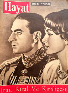 1959 yılının son haftasına ait Hayat dergisinin "İran Kral ve Kraliçesi" başlıklı kapağı. |