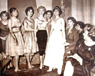 Türk motifleriyle modern modeller... İsimleri Ayten Erakman ve Nedime Titiz. İkisi de Selçuk kız sanat enstitüsü mezunu. Geçenlerde isimlerinin baş harflerini birleştirerek beraberce bir atölye kurdular. Bütün gayeleri Türk motiflerini stilize ederek bugünkü modaya uygun şekilde hazırlamak. Üstte atölyenin açılışında mankenler ve atölye sahipleri (iki başta), yanda da çok beğenilen model...1960 Hayat Dergisi. |