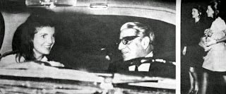Yeni Gelinin Yeni Hayatı Amerika cumhurbaşkanı John. F. Kennedy öldürülünce iki çocuğuyla dul kalan Jacqueline Kennedy armatör Aristotle Onassis ile sürpriz bir evlilik yapmıştı. Aslında karı-koca ayrı dünyaların insanlarıydılar. Fakat Jacqueline için yeni kocasının hayatına alışmak, onun yakınlarıyla kaynaşmak pek zor olmamıştı. Ne çare ki genç kadın bütün gayretlerine rağmen dedikodulardan yakasını kurtaramadı. Özellikle üvey kızı Christina ile hiç geçinemediği söylentileri yayıldı. Hele Caroline ile John John her fırsatta onları azarlamaya kalkışan üvey abladan hiç hoşlanmadılar. Üstte solda Onassis çifti, sağda Jacqueline üvey kızı Christina ile...1970 |