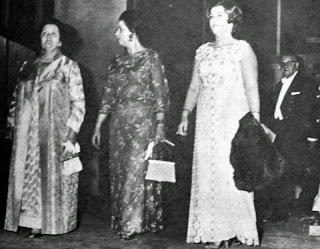 Hanımlar Protokolü : Pakistan cumhurbaşkanı general Yahya Han'ın yurdumuza yaptığı resmi ziyarette yemek ve davetler yine ağırlığı teşkil etti. Konuk cumhurbaşkanı Ankara ve İstanbul'u doyasıya gezdi. Bilhassa Boğaza ve Dolmabahçe sarayına hayran kaldı. Üstteki resimde Yahya Han'ın başkentten ayrılmadan önce cumhurbaşkanı Cevdet Sunay onuruna Ankara otelinde verdiği yemekte hanımlar protokolünün önde gelen üç siması (soldan) : Bayan Sunay, Bayan Demirel, Bayan Atasagun görülüyor...1970 |