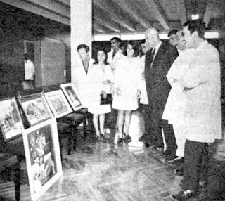 Ressam Doktorlar Cerrahpaşa tıp fakültesi cerrahi kliniği stajyer ve doktorlarının kurduğu resim kulübünün hastanede açtığı yılın ilk sergisinde üç profesör ve on yedi stajyer doktorun tabloları teşhir edildi. Resimde Dekan Prof. Dr. Osman Barlas ve kulüp başkanı Prof. Dr. Turhan Gürgen ressam stajyerlerle hastane salonlarındaki sergide görülmektedir...1970 |