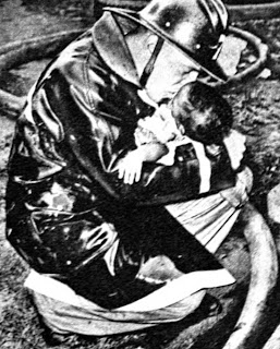 Ağızdan ağza nefes vermek suretiyle baygın bir zenci çocuğunun hayatını kurtarmak için çabalayan bu itfaiye erinin resmi geçenlerde New York'taki bir yangın sırasında çekilmiştir. İşte ırk mücadelelerinin yer yer bir iç savaş halini aldığı bir memlekette bir insanlık örneği...1962 |