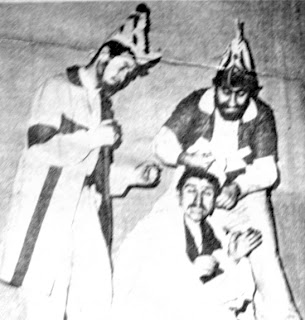Karagöz'ün Oyunu Türk temaşa sanatının en güzel örneklerinden biri olan Karagöz'ü yaşatmak amacıyla Türkiye milli talebe federasyonu Üsküdar'ın Bağlarbaşı semtinde dernekler ve spor kulüpleri yararına temsiller vermektedir. Temsiller yaz aylarında köy meydanları ve harman yerlerinde devam edecektir. Resimde "Karaman'ın koyunu Karagöz'ün oyunu" piyesinde Refik Ceylan, Volkan Saraçoğlu ve Gültekin Kurtul görülüyor...1970 |