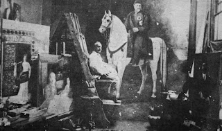 şahsi atölyesinde babasının resmini yaparken
