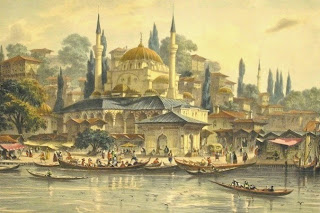 gravürleri bulunan L'orient'ten 19. yüzyıl Üsküdar iskelesi ve kayıkçılar gravürü.