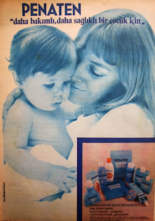 Penaten tam bir çocuk bakım serisidir. Yağ, krem, pudra, banyo köpüğü, şampuan, vücut bakım sütü, güneş sütü. Pereja İleri kimya a.ş. (1975)