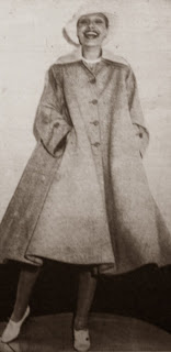Torrente'nin gri flanel kumaştan mantosu omuzdan itibaren geniş ve bol oluşuyla son derece rahat ve kullanışlı. Adeta bir pelerin havasını taşıyan manto önünden bele kadar düğmeli. Çift yakalı mantoyu aksesuar olarak hoş şapka seçenekleri tamamlamakta...1975 |